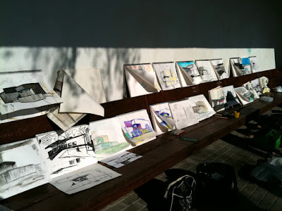 Día completo, un dibujo de dos horas de perspectiva interior y en la hora restante dos dibujos exteriores.